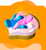 女方躺下,雙腳屈曲微微提起,男方則相反方向四腳爬爬,上身被女方雙腿夾,